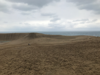 鳥取砂丘に到着(12:10)。思っていた以上の砂感にテンションが上がりました。歩いてみると高低差が大きいのがよく分かりました。良い運動です。風は強かったですが、ちょうど雨が降ってなかったのが幸いでした。ポケモンはクラブがいました。
